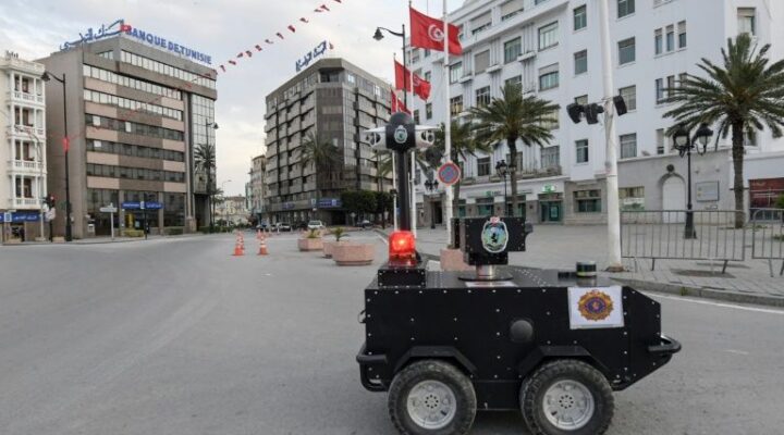 Tags GENERAL Tunisia ‘robocop’ enforces coronavirus lockdown A police robot has been deployed by Tunisia’s interior ministry to patrol the streets of the capital and enforce a