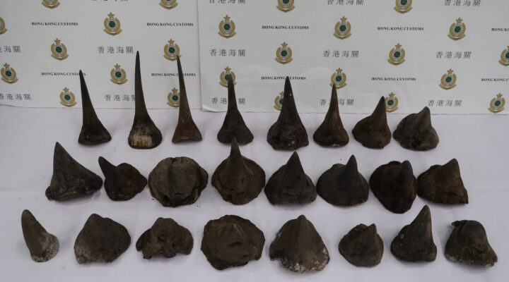 Tags GENERAL Hong Kong snares record haul of rhino horns from South Africa Hong Kong customs seized a record 40 kg (88 pounds) of rhino horns worth around HK$8 million ($1 million) from