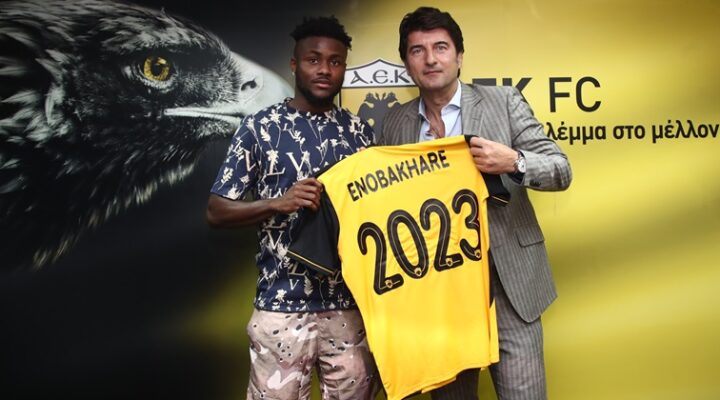 Tags GENERAL Nigerian striker Bright Enobakhare joins Greek side AEK Athens Nigerian Under-23 forward Bright Enobakhare joined Greek side AEK Athens on a three-year deal, the club announced. The 22-year-old joins