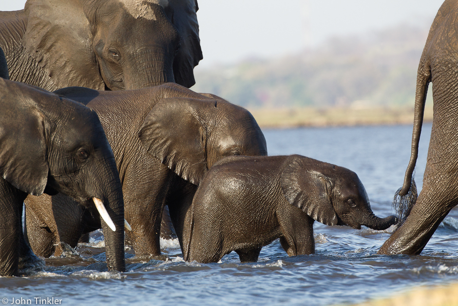 Elephants swim in large numbers across the Chobe River to the grassy shores of Namibia to feed, risking their lives in the legal hunting region. The elephants quickly swim back to the safety of Chobe national park after a filling a meal.