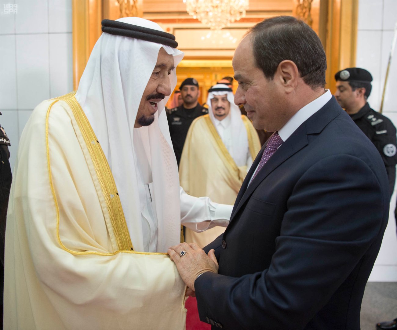 Egyptian president Abdel Fattah al-Sisi received a royal welcome Sunday from King Salman as he visited Saudi Arabia to strengthen ties between the two nations.