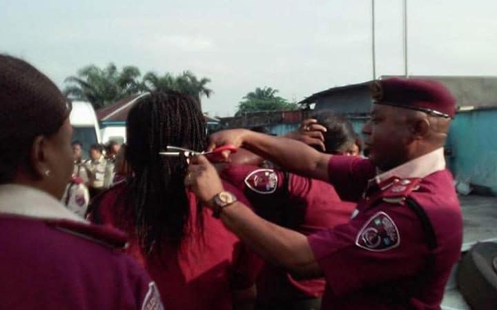 Andrew Kumapayi, regional commander for the FRSC in the southern Rivers State was filmed taking a pair of scissors to the women’s hair at an inspection parade in the city of Port Harcourt on Monday a move that sparked outrage online.