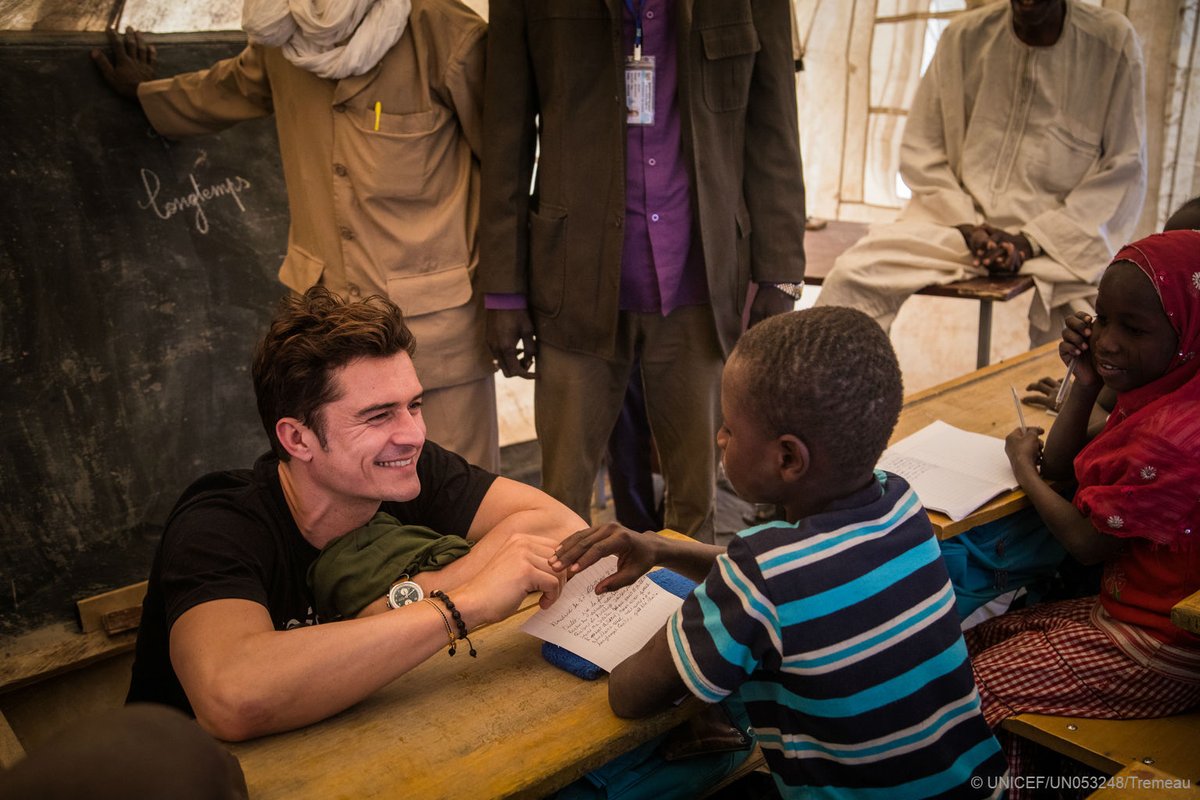 Celebrity English actor Orlando Bloom visited children displaced by the Boko Haram terrorist attacks and are now camped in Diffa southeast of Niger.