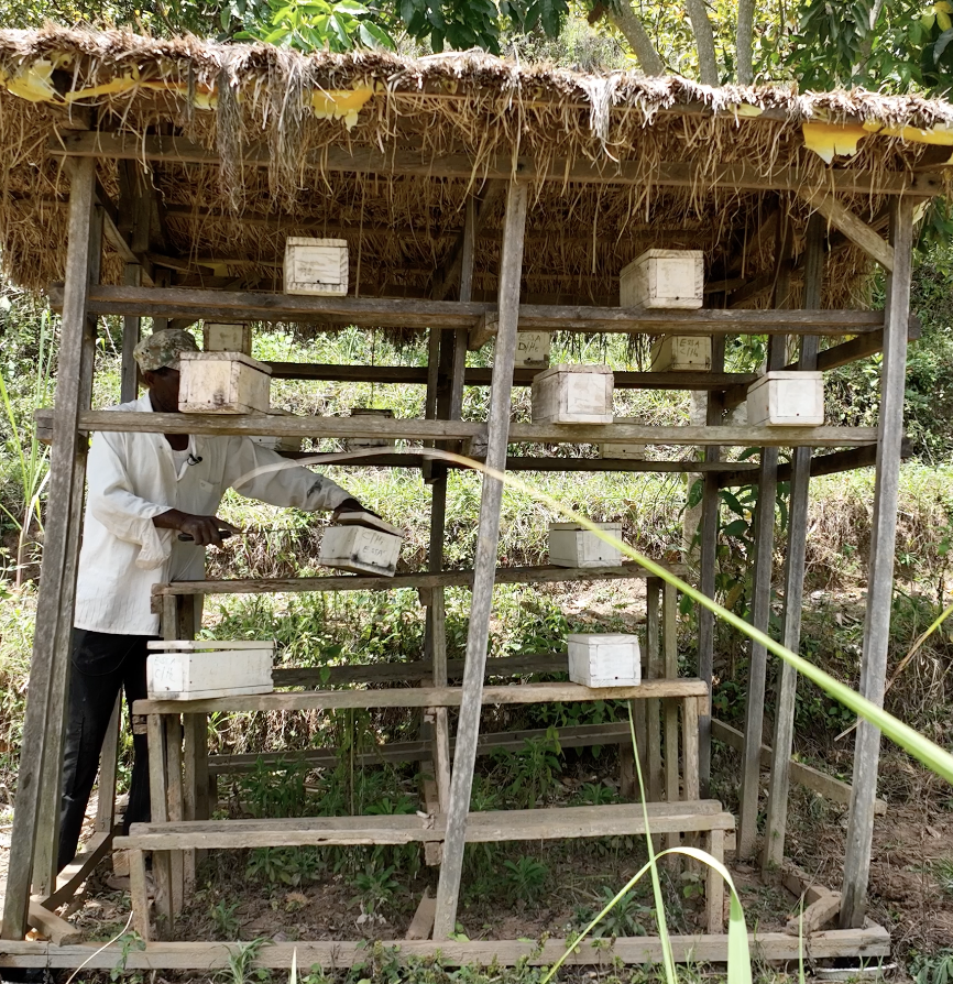 For young stingless bee farmers, patience and careful learning are essential. Many start by observing experienced farmers, learning how to locate colonies and manage hives. One farmer recalls starting in 2021, guided by a friend already in the trade.