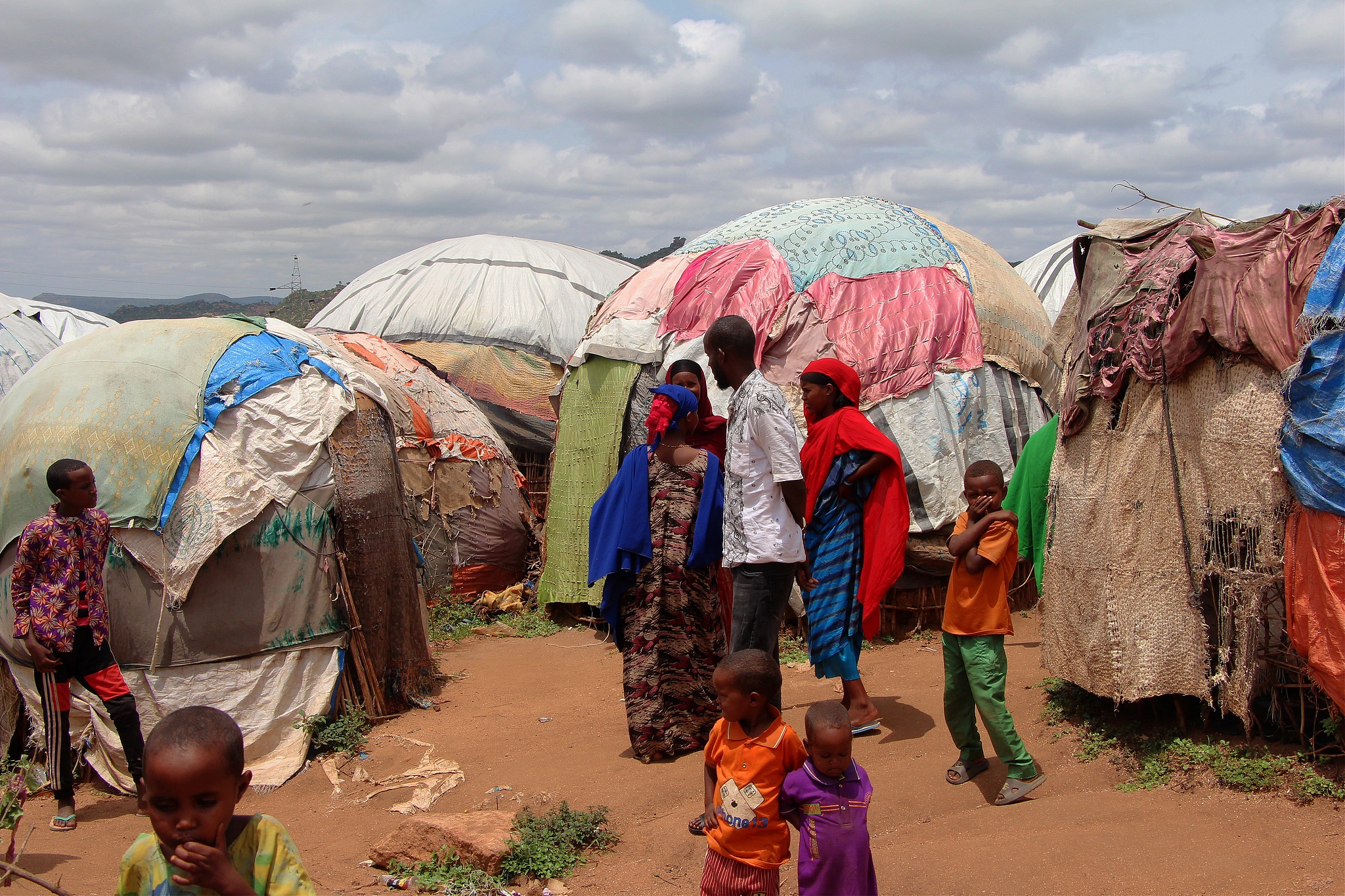 QOLOJI, ETHIOPIA - JULY 10: Families at Qoloji IDP camp, the largest camp in Ethiopia housing over 100,000 displaced individuals, visited by Anadolu on July 10, 2023. The internally displaced persons' (IDPs) camp was congested, with makeshift shelters housing displaced families having no proper sanitation facilities and limited access to clean water. PHOTO/CFP